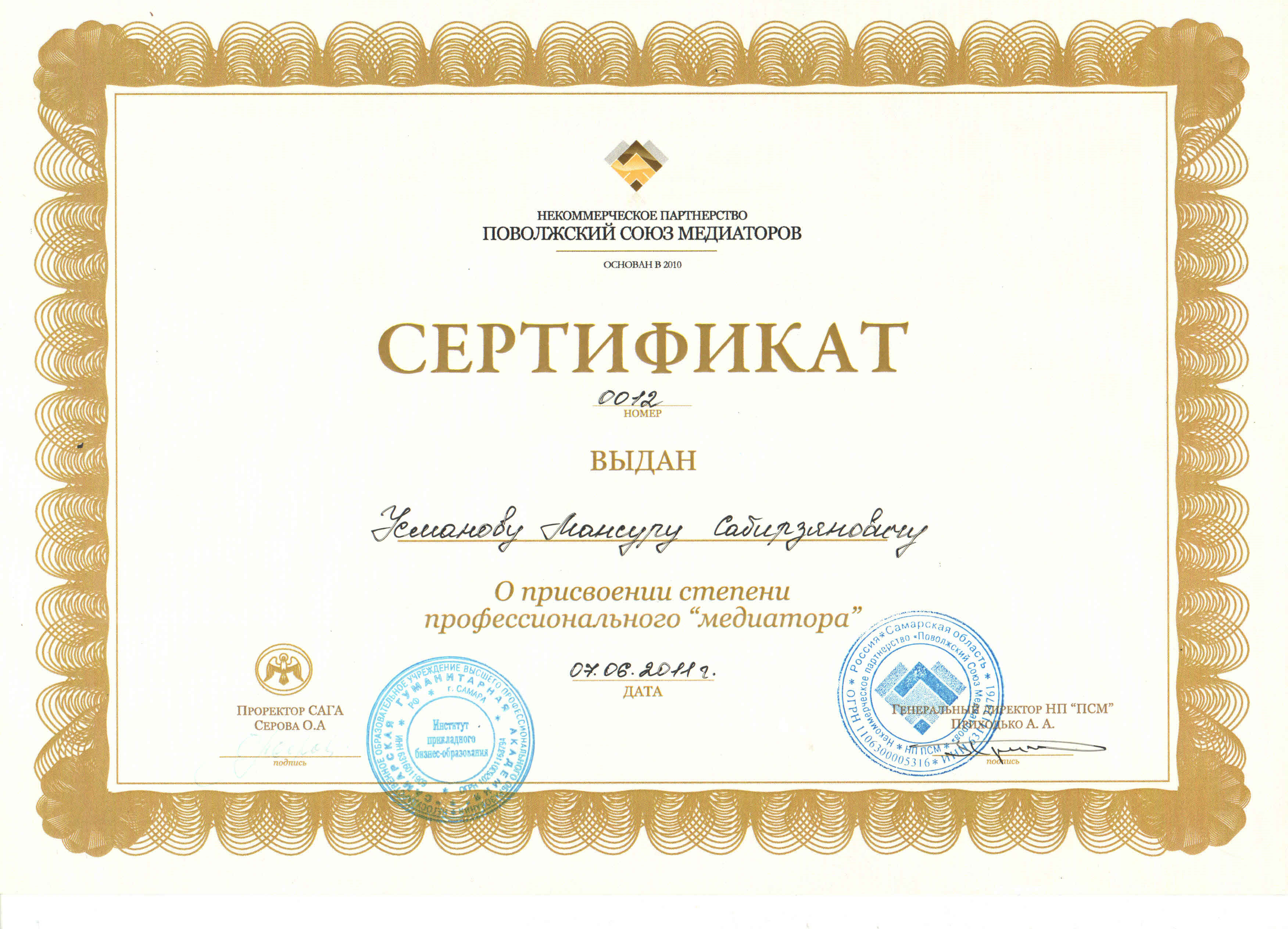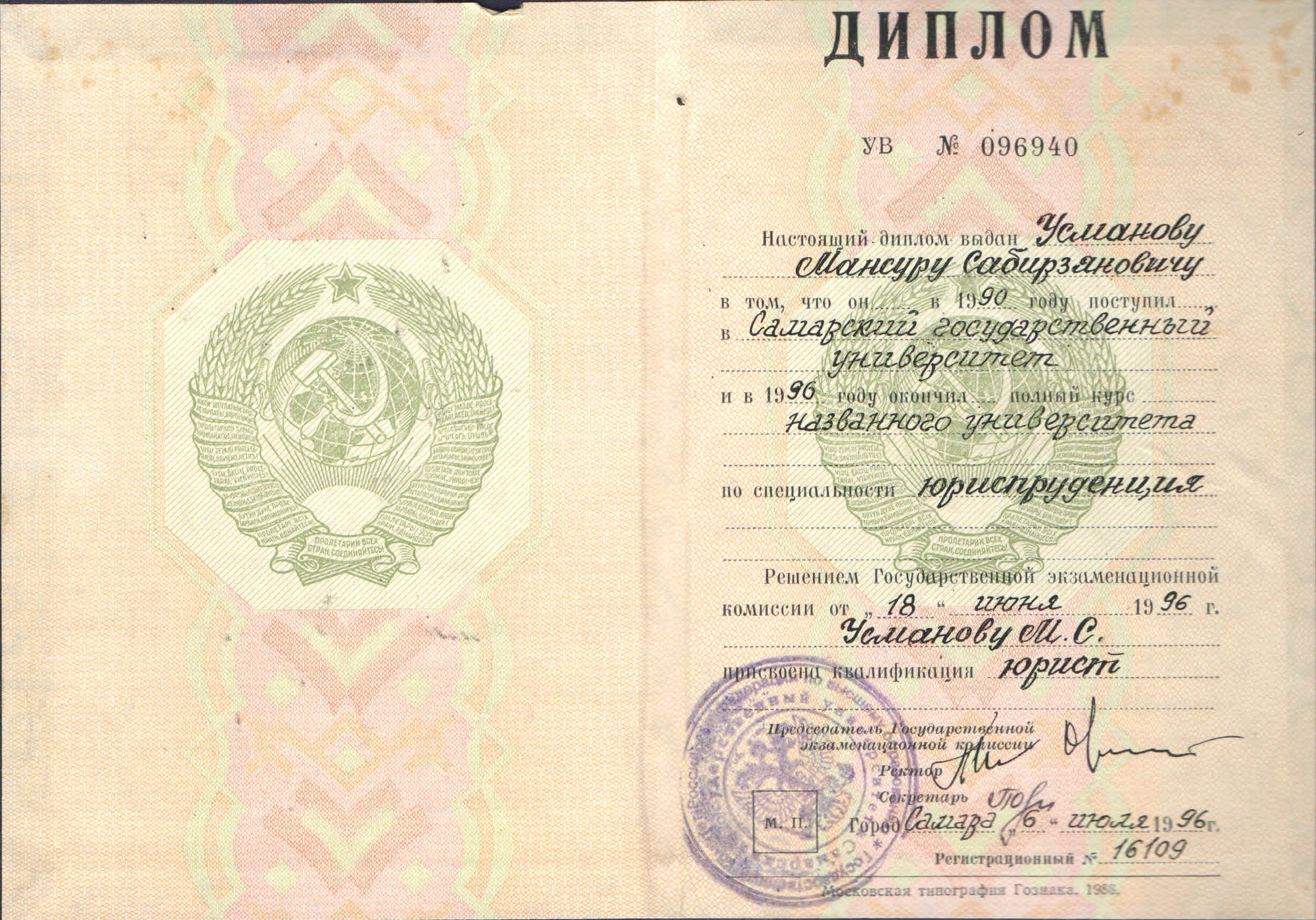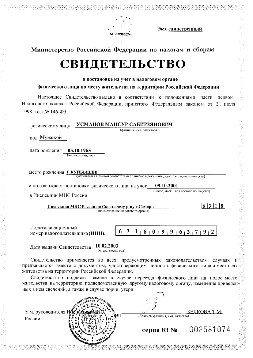 Адвокат УСМАНОВ Мансур Сабирзянович